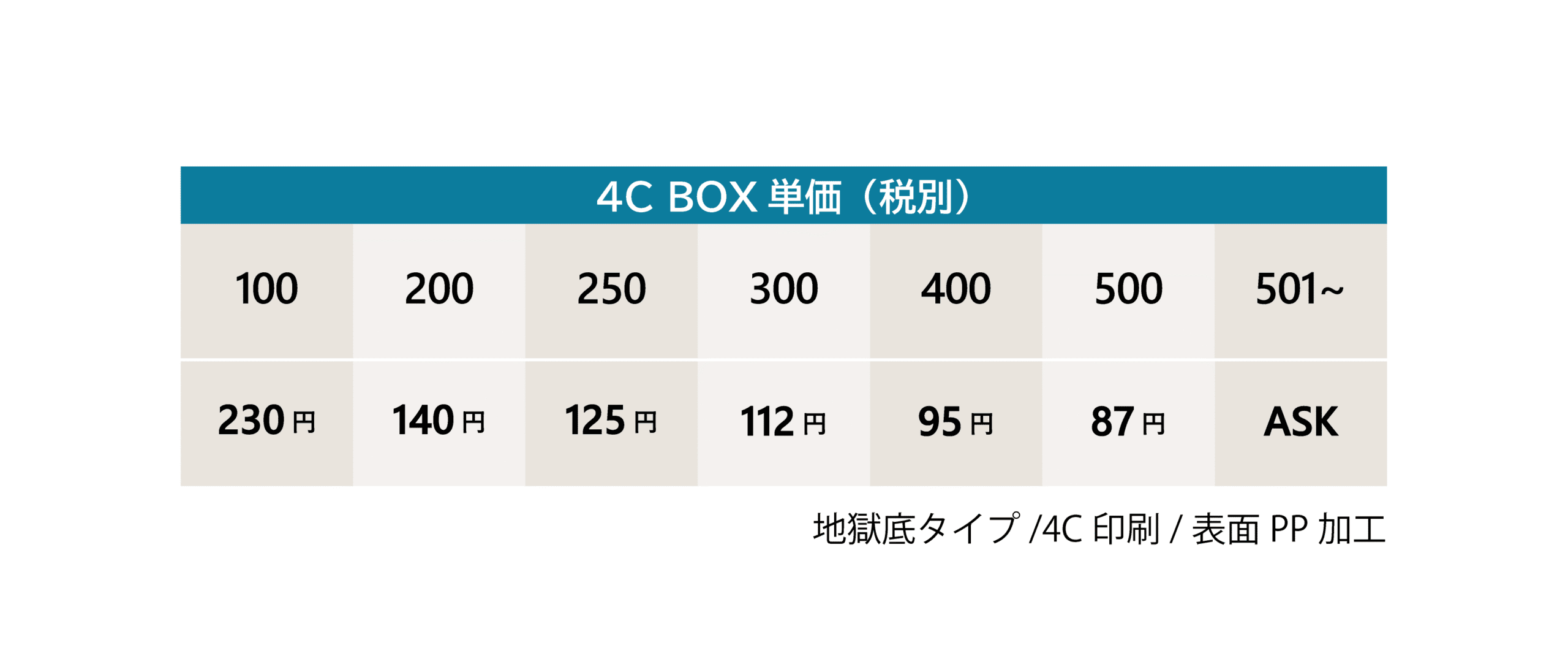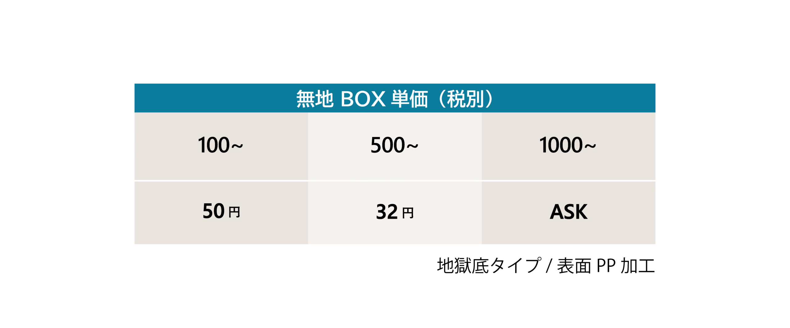底面の四方から組み立てるタイプの箱です。底の強度はキャラメル箱よりも強いですが、